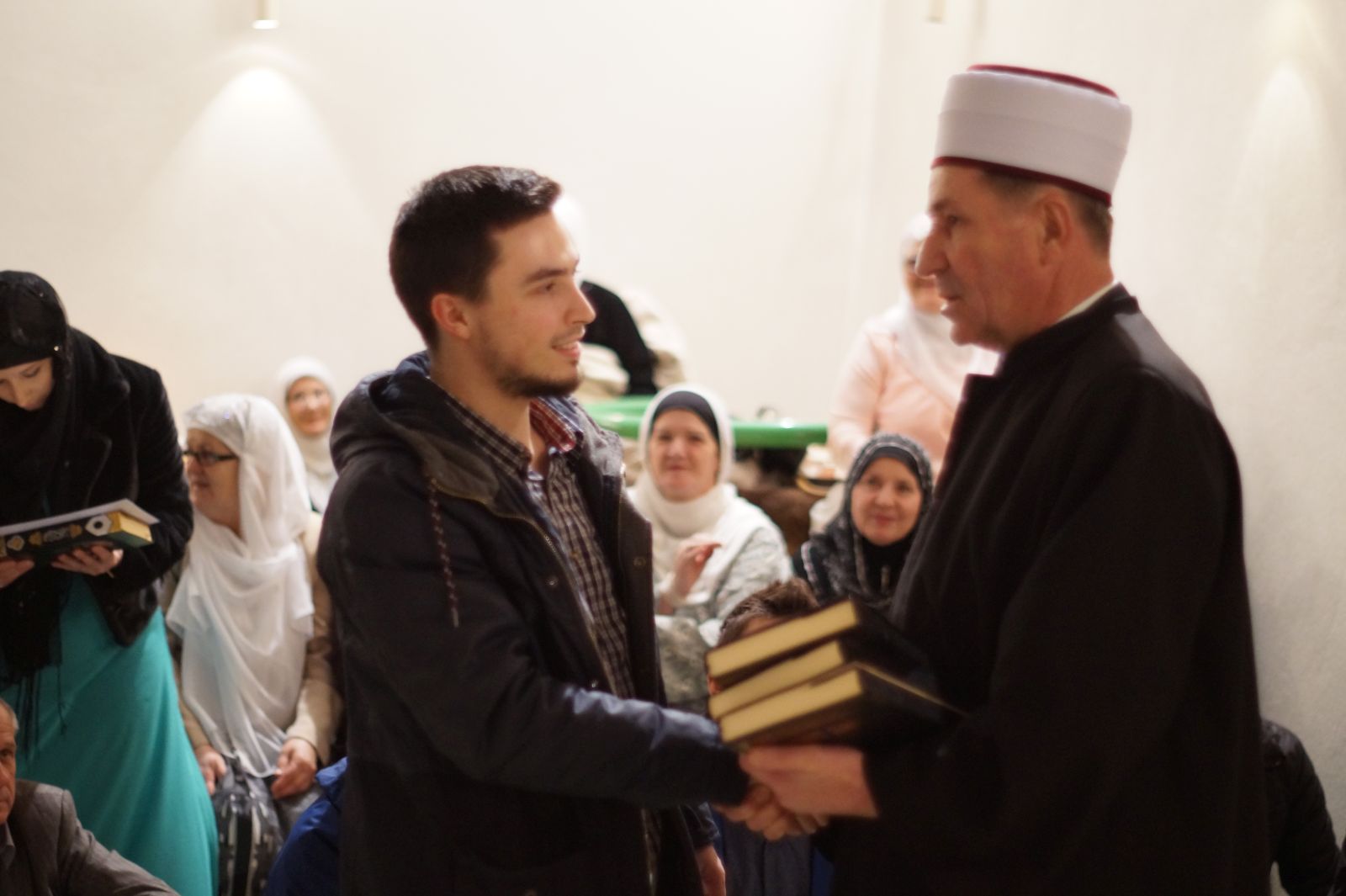 Na kraju proučena je i fatiha za one polaznike koji su preselili na ahiret uz dovu Svevišnjem da im Kur'an bude svjetlo u kaburu i šefaatdžija na Sudnjem danu kao i svima nama. Na kraju programa je pristigao i prof.dr. hfz Safvet Halilović koji uručio poklon hfz Edin ef. Bukvi.