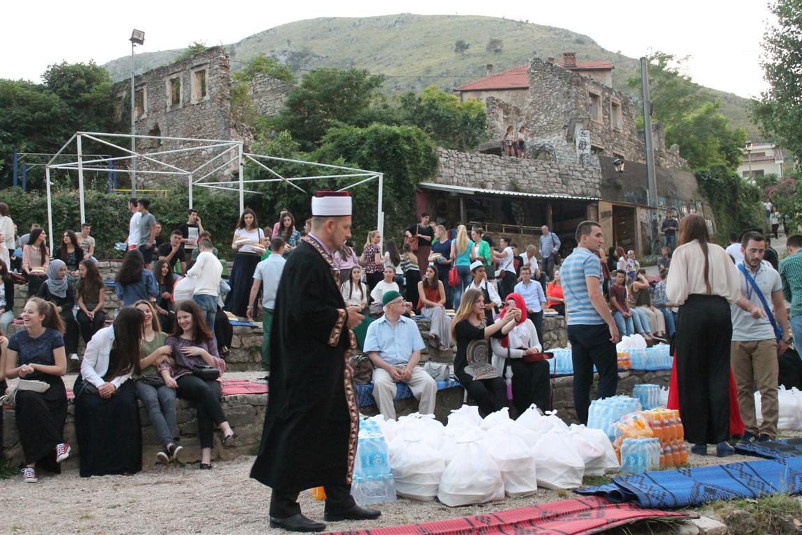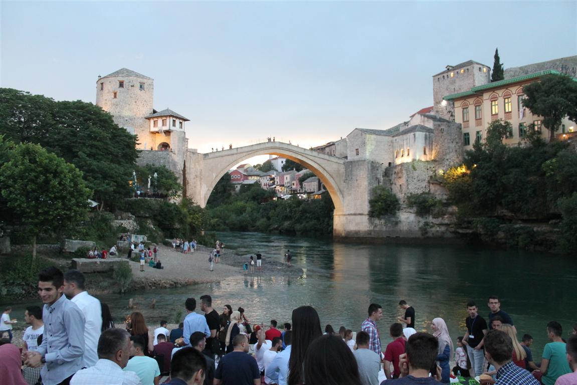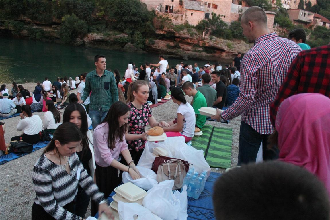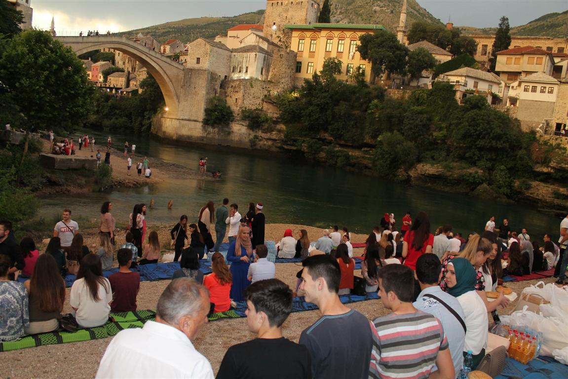 Radost zajedničkog iftara u petak je ispod Starog mosta u Mostaru podijelilo preko šest stotina omladinaca, aktivista i članova Info-servisa za mlade Medžlisa IZ-e Mostar.