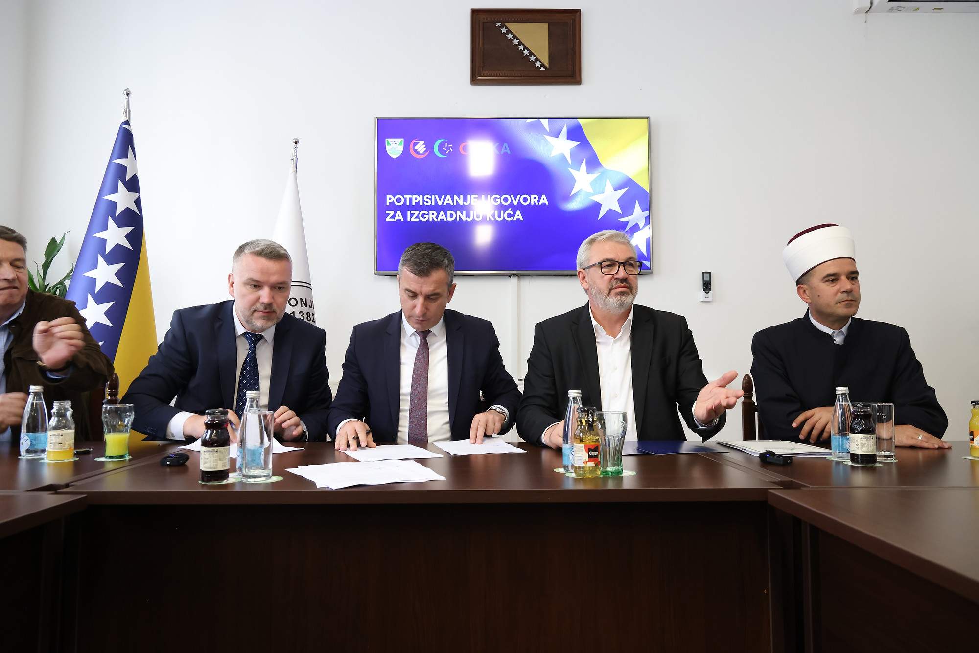 U sali Općine Konjic danas su potpisani ugovori o izgradnji osam novih kuća za porodice koje su pretrpjele štete u nedavnim poplavama.